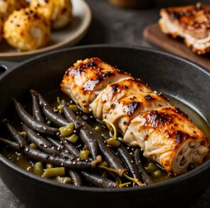 - Přisyp namočené fazole a zalij vodou nebo vývarem tak, aby byly suroviny ponořené.
