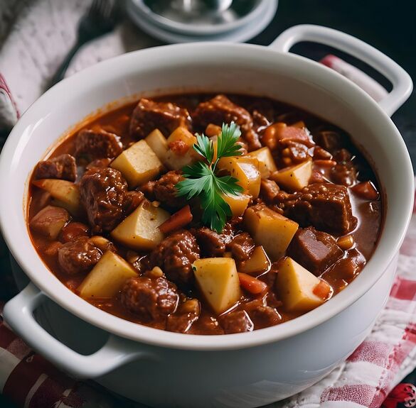 Kalops je tradiční švédský hovězí guláš připravovaný pomalým dušením masa s cibulí, kořením a trochou octa nebo vína.