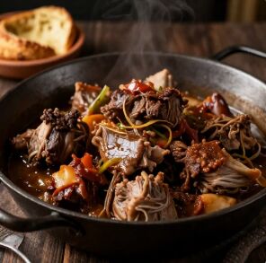 (tradiční limburské kyselosladké dušené maso)