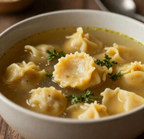Tato polévka se podává bez sýra a bez další zeleniny, aby vynikla chuť vývaru a jemnost knedlíčků.