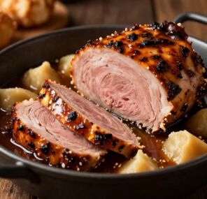 - Uzené maso krátce opláchněte pod studenou vodou, abyste odstranili přebytečnou sůl, a osušte ho.