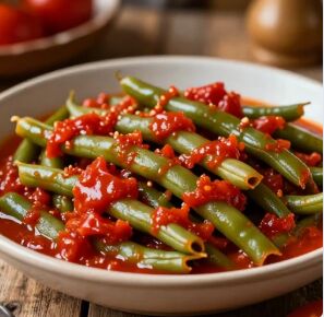 Turecké zelené fazolky v rajčatové omáčce (pomalý hrnec)